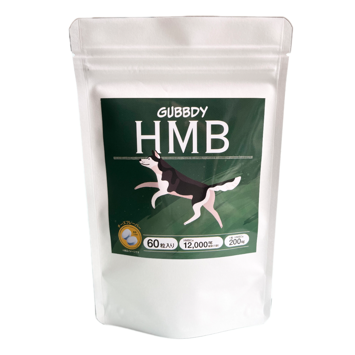 そこで、当社ではHMBがもつ「筋肉の健康維持をサポートする」働きに着目し、愛犬の理想的な体型維持をサポートする犬用サプリメント「ガブディHMB」を開発いたしました。