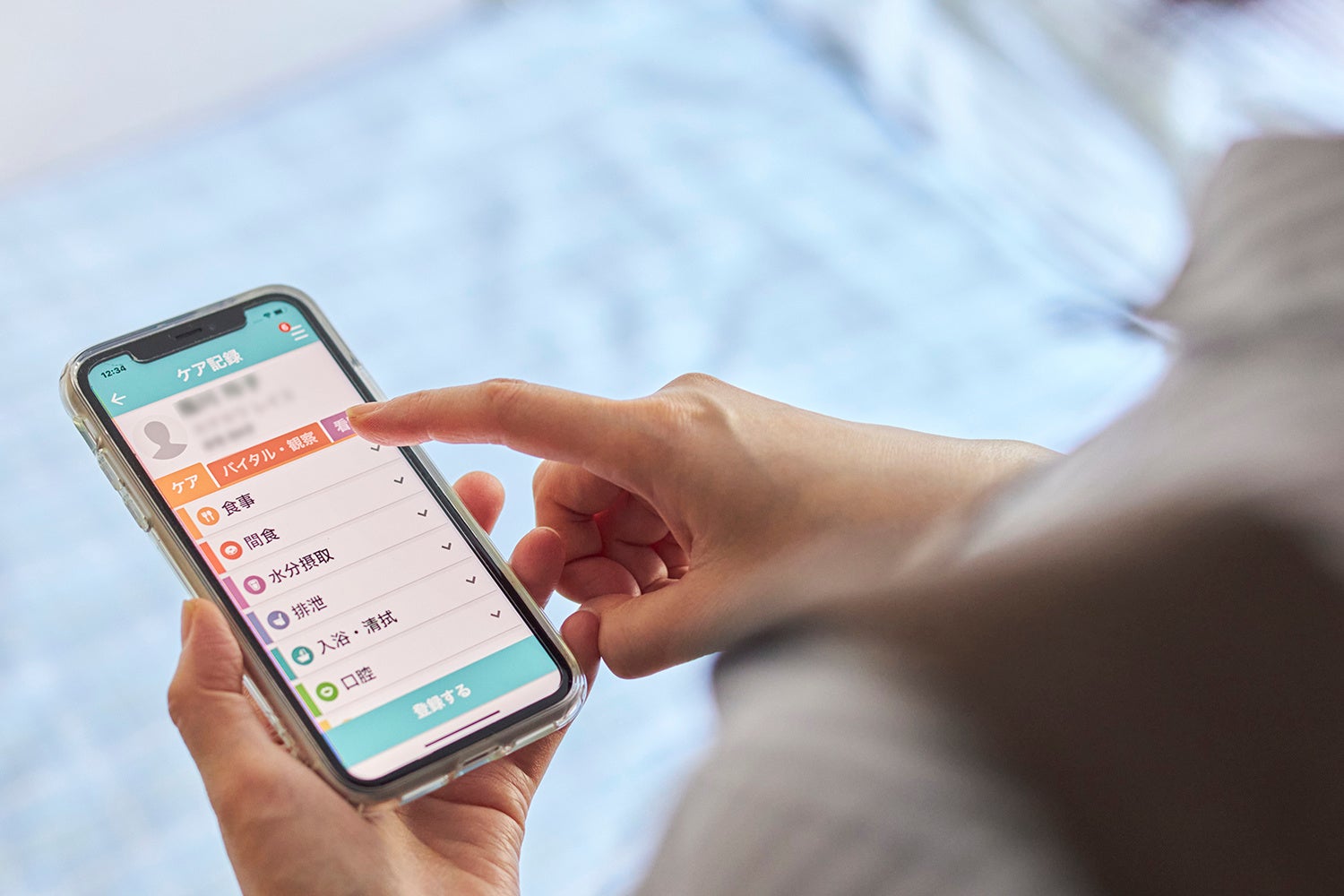 CareViewerの「介護サービスのAIによる高度化」構想で鍵になるのが、テクノフェイスと共同開発中で、すでに多くの介護現場で実用もされている「AI・介護記録ソフトCareViewer」です。