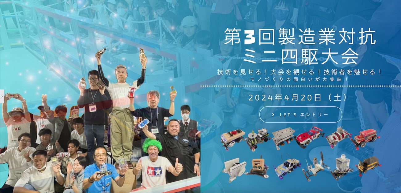 技術を見せる!大会を観せる!技術者を魅せる!モノづくりの面白い・楽しいが大集結!!「第3回製造業対抗ミニ四駆大会」を2024年4月20日に開催します。