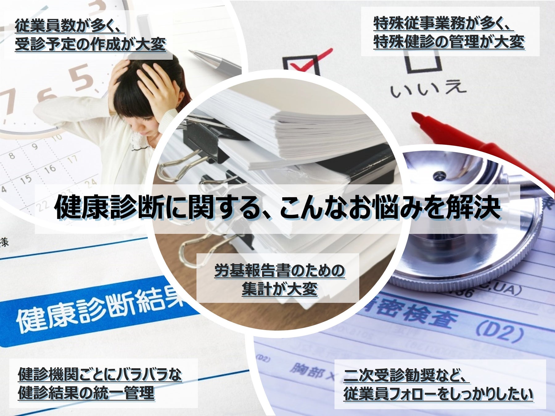 - 健康診断ご担当者の、様々なお悩みや課題を解決しています。