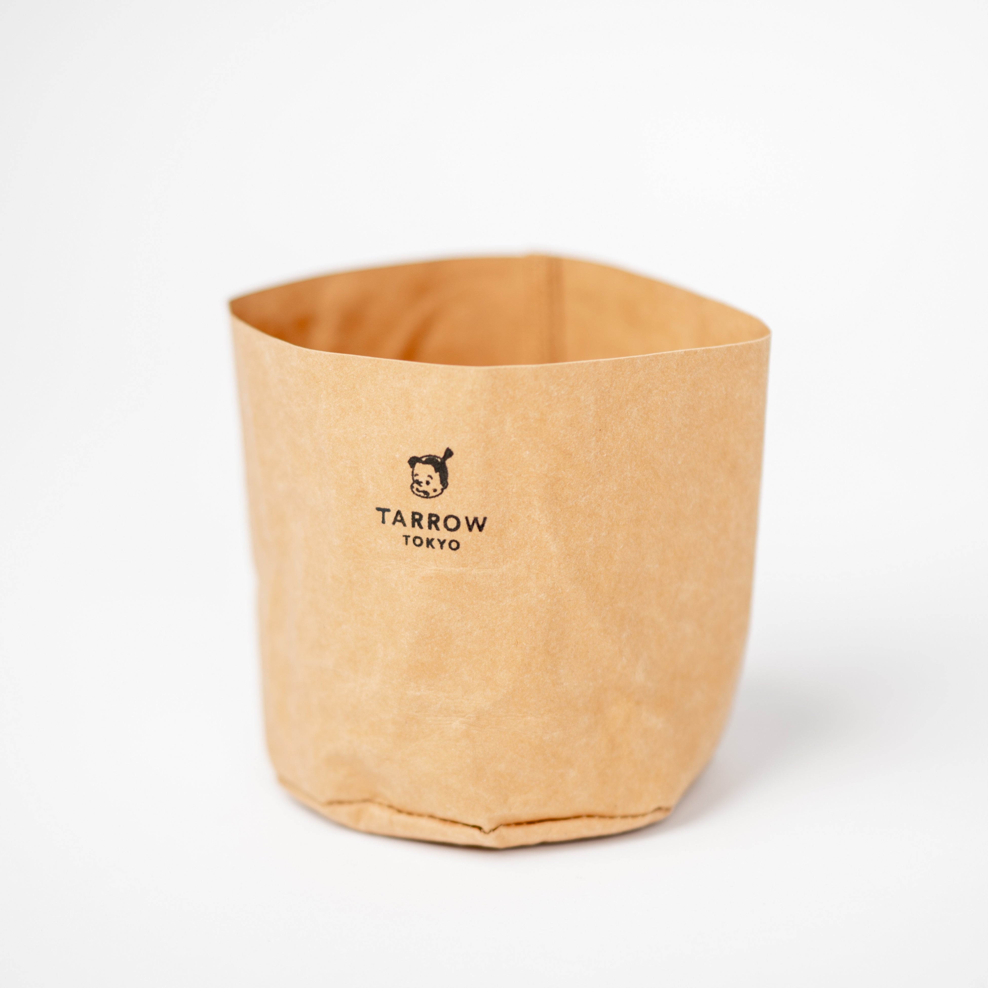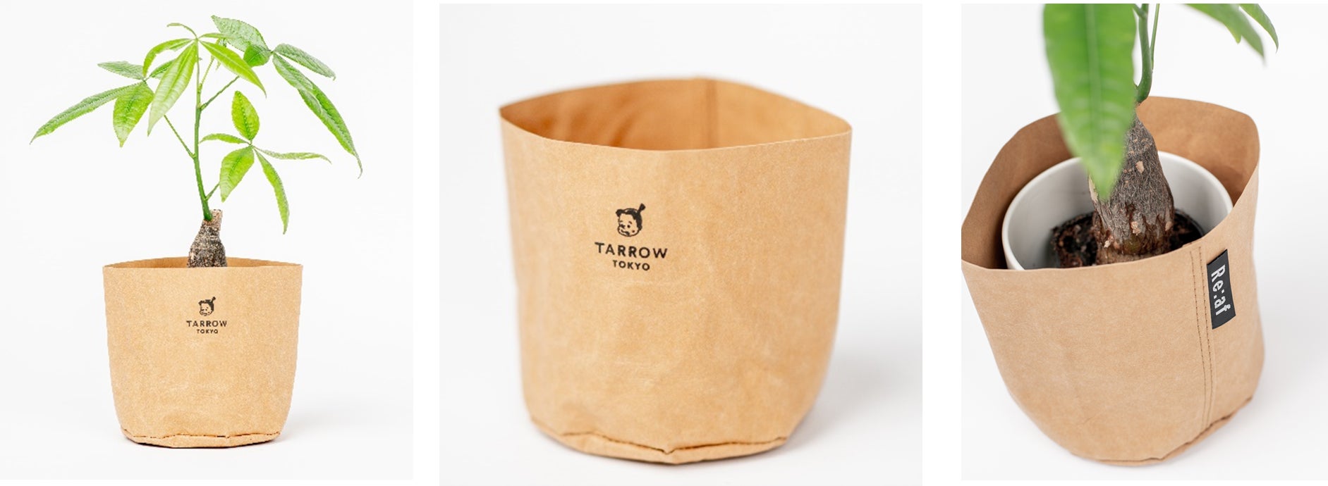 グリーンスナップは紙でできた新しいリサイクル素材をつかった鉢カバーを展開しています。この鉢カバーは近年観葉植物のニーズが高まっていること、またリサイクル素材を用いたサステナブルな商品を持ちたいという想いから誕生した商品です。今回サステナブルなモノづくりを行っているグリーンスナップとタロウがコラボして、ロゴ入りの限定鉢カバーを作りました。