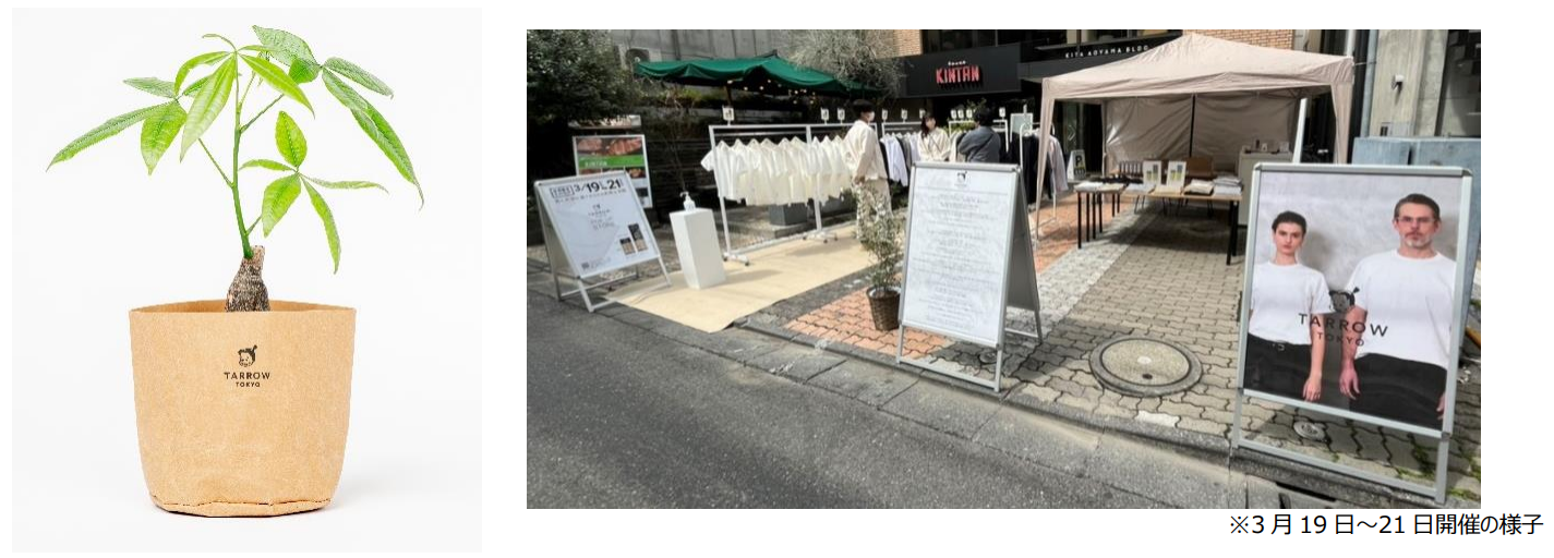 繊維製品の製造販売(アパレルOEM)を行う株式会社グラックジャパン(本社:名古屋市中区、以下:グラックジャパン)が立ち上げた新ブランド『TARROW TOKYO(タロウ トウキョウ、以下:タロウ)』は、植物コミュニティアプリ「GreenSnap (グリーンスナップ)」を運営するGreenSnap株式会社(東京都中央区、代表取締役:西田貴一)と、体験型POPUPショップを2022年4月23日(土)~24日(日)、東京都港区北青山で開催します。ご購入いただいたお客様に「GreenSnap」とのコラボを記念して作成したPOPUPショップ限定の鉢カバーと植物をプレゼントします。