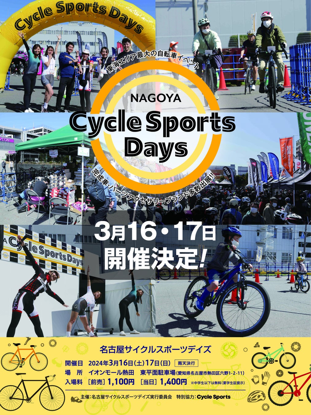 2024年3月16日(土)・17日(日)に東海エリア最大級の自転車イベント『名古屋サイクルスポーツデイズ』を、イオンモール熱田で開催します。(主催は名古屋サイクルスポーツデイズ実行委員会)