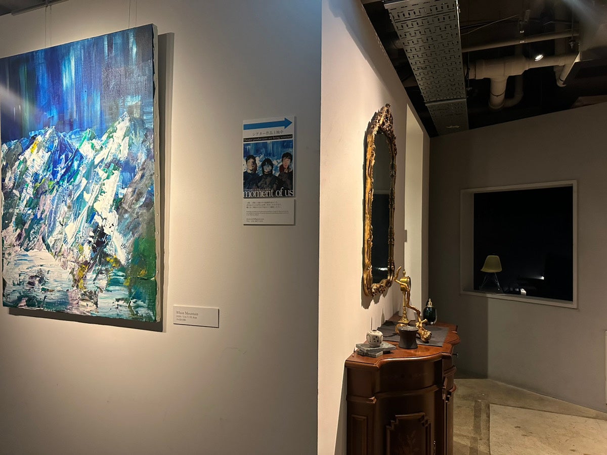 1年前、友人の紹介で第2回個展「ACROSS」で真田氏と出会いました。彼の絵画に心を奪われ、その日に個展のメインビジュアル「漸進する風景 / progressive landscape」を購入しました。翌月に会場である「Sensing Touch of Earth」の2階に御縁もあり常時展示が叶いました。