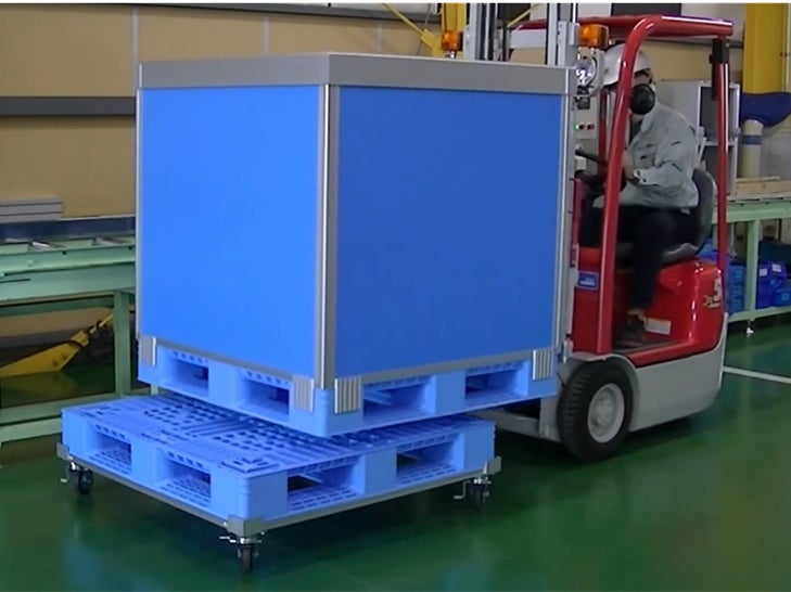 物流業界では、昨年4月からドライバーの時間外労働の上限が規制され、物流の維持が懸念されました(物流2024年問題)。そのため、物流現場ではドライバーの荷待ち時間削減のための作業効率化に向けた対応に迫られており、「ちょいカーゴ」を導入いただいています。例えば荷下ろしの際、おろした荷物をハンドリフトで何度も往復して運ぶ必要がありますが、フォークリフトから「ちょいカーゴ」に乗せることで手押しで誰でも楽に移動ができます。作業者の負担軽減と合わせ、作業効率向上、時間短縮を実現します。