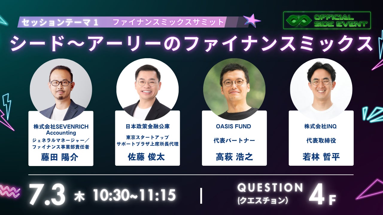 『興す人を、成す人に』をミッションに掲げ、スタートアップのデットファイナンスを支援する株式会社INQ(本社:東京都立川市、代表取締役:若林哲平、以下「INQ」)は、スタートアップのエコシステム向上を目指す、株式会社Fivot / 株式会社Yoii / 株式会社IPPO / 株式会社StartPass / 株式会社SEVENRICH Accounting と共に、2025年7月2日より京都で開催される国内最大級のスタートアップカンファレンス「IVS2025」の公認サイドイベントを開催いたします。