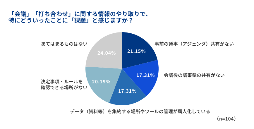 - Q.「会議」「打ち合わせ」に関する情報のやり取りで、特にどういったことに「課題」と感じますか?