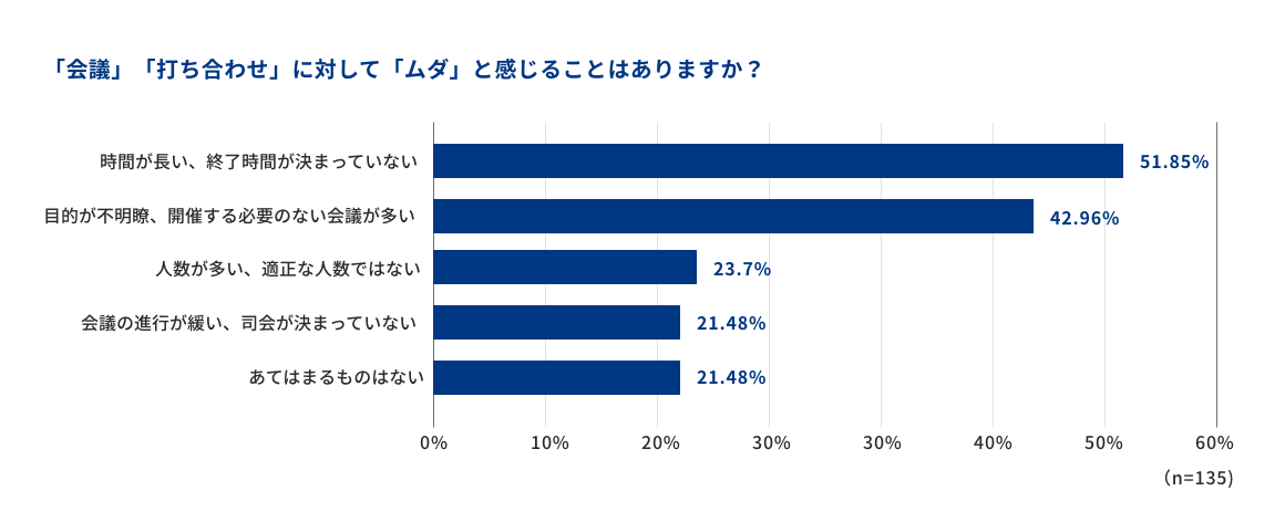 調査内容からも「「会議」「打ち合わせ」に対して何か改善が必要と感じますか?」という質問に対し、