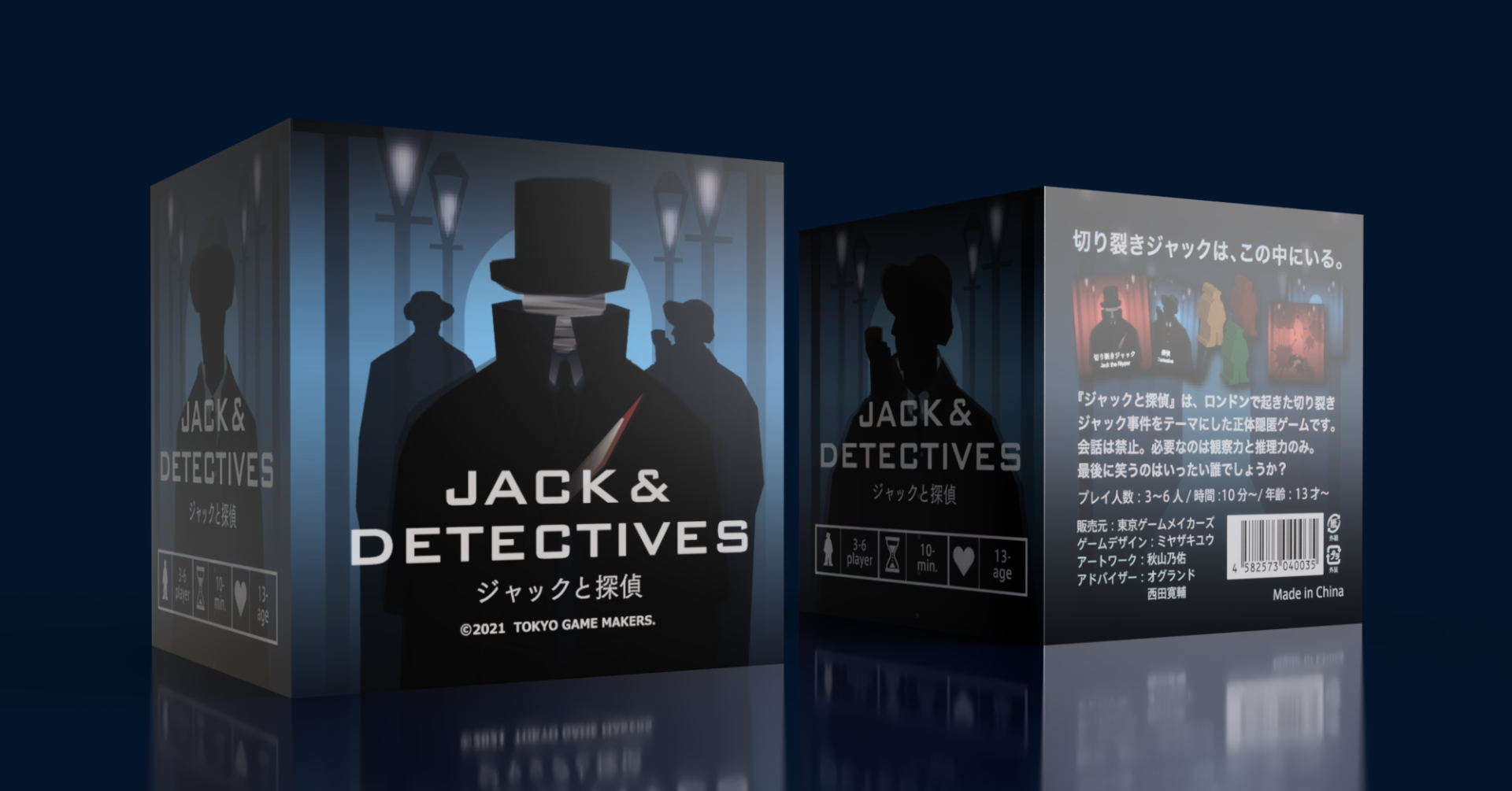 19世紀のロンドンで起きた切り裂きジャック事件をテーマにしたゲームです。プレイヤーは殺人犯の「切り裂きジャック」(以下、ジャック)か、ジャックを追う「探偵」、あるいはジャックに協力する「心酔者」として、それぞれの目的を達成できるようプレイします。
