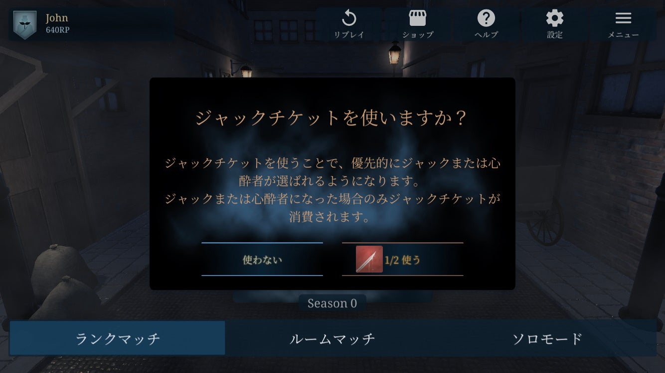 対戦前にジャックチケットを使うことで、優先的にジャックもしくは心酔者になることができます。