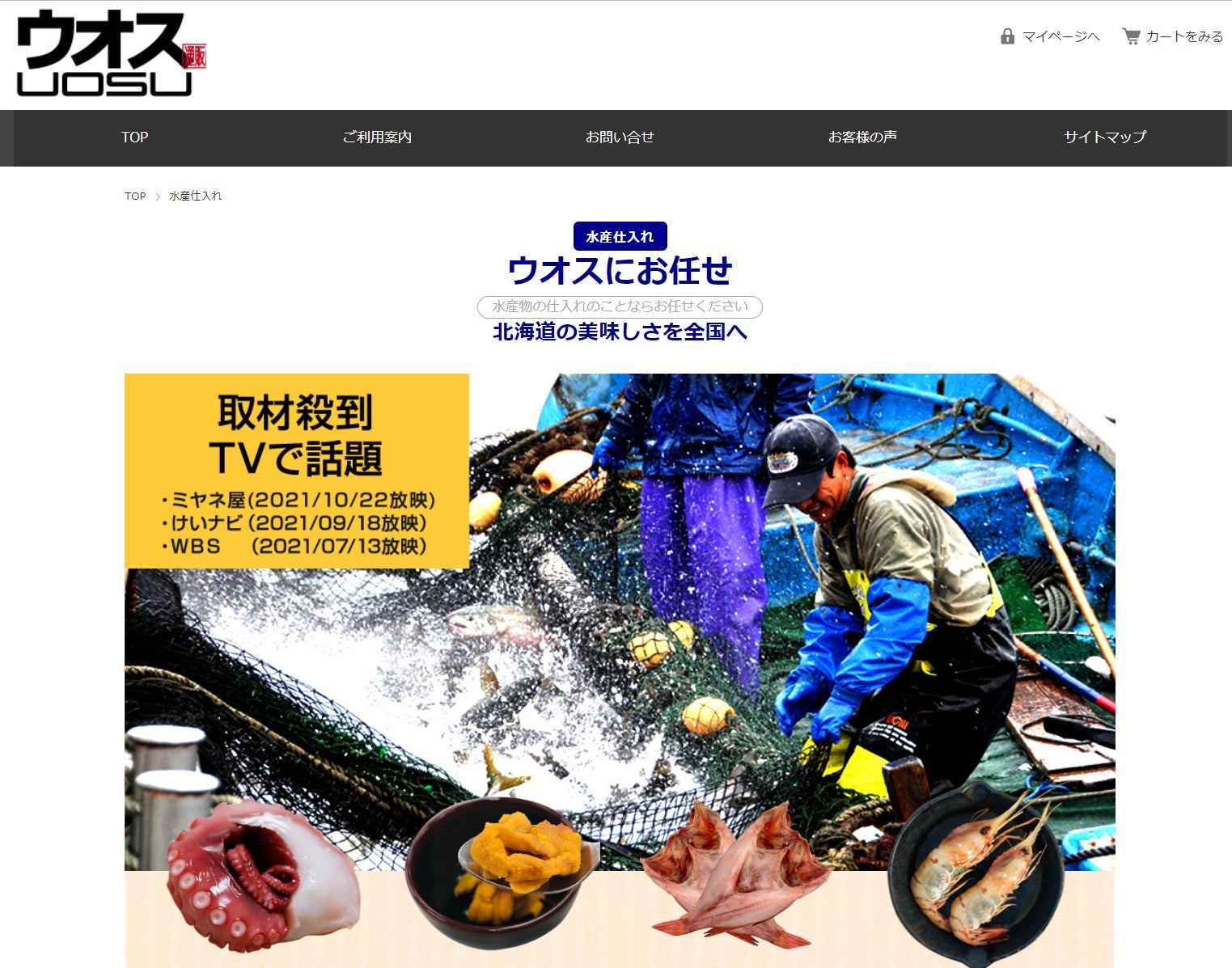 水産仕入れを本業としている水産通販ウオスでは、国内最大級のECサイトをはじめ、多数のECサイトに出店をし小売業も行っている。そのため、殆んどの商品は一般消費者でも購入しやすい数量単位に小分けされ、少量からも購入可能な仕組みづくりを積極的に行っている。