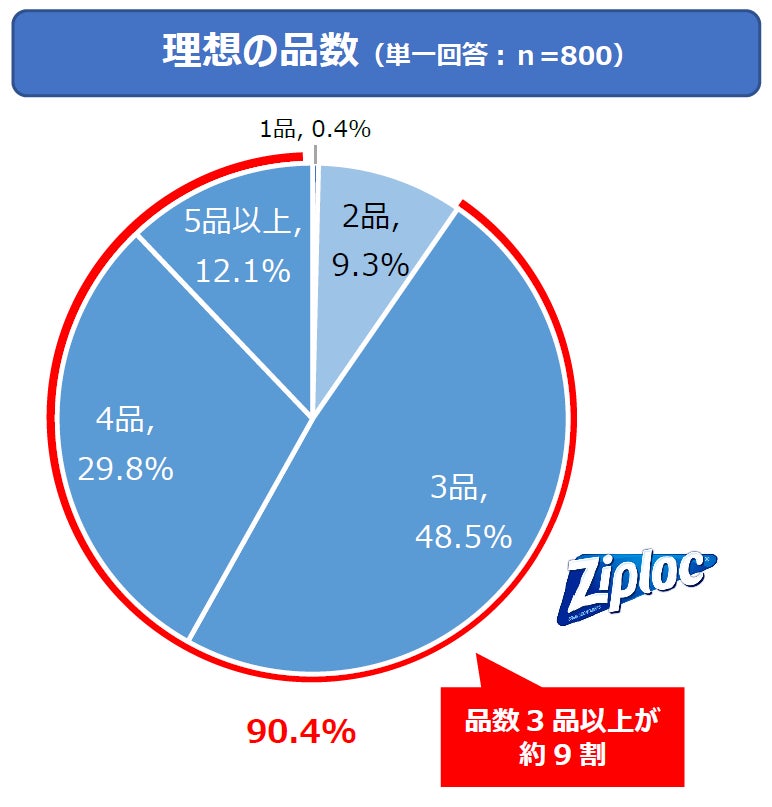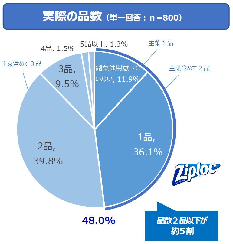 ジップロック®ブランドを企画・販売する旭化成ホームプロダクツ株式会社は、食卓の「品数」に関する実態を明らかにするため、2022年5月に15歳以下の子どもを持つ家庭で、週一回以上料理をする男女計800名を対象にインターネット調査を実施しました。
