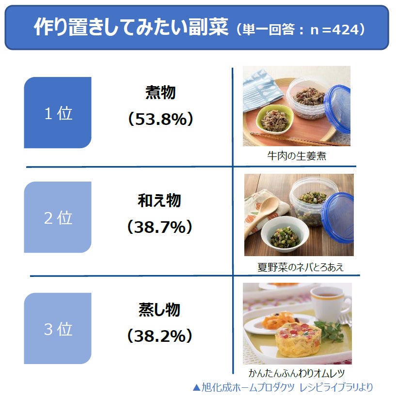 - TOPICS.3 作り置きしてみたい副菜ランキング1位は「煮物」、保存容器のこだわりは「汁漏れしない」