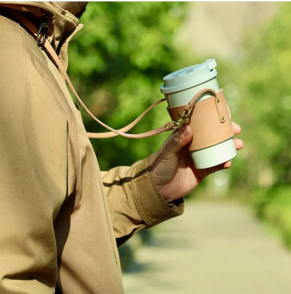 コーヒーなどの持ち歩きに活躍するレザーホルダー。イベント当日は刻印サービスも実施するので、プレゼントにも最適です。