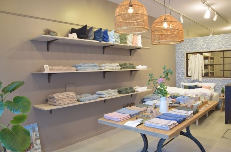 フランス製のリネン製品をフランスから直輸入して販売している浅草の日本初上陸ショップ。やさしい色合いのリネン商品がそろいます。