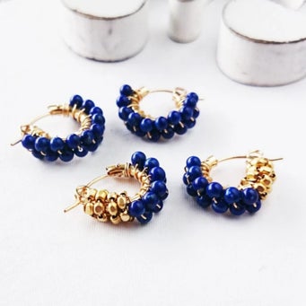 ゴールドと深いネイビーのコントラストが印象的なフープピアス/イヤリング。