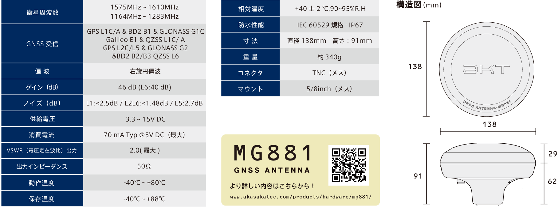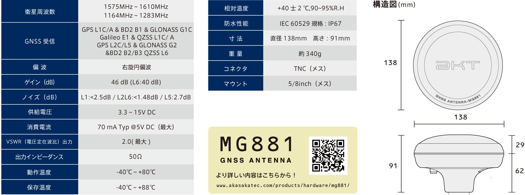 同日リリースとなるMG881は、センチメータ級の高精度測位に適した小型マルチGNSSアンテナです。高性能GNSSセラミックパッチアンテナと独自のフィルタリング機能を統合し、革新的な独自の回路設計と高度なダブルフィルターにより、帯域外信号による干渉を軽減します。