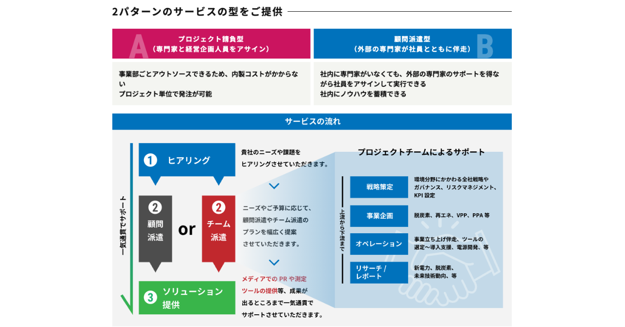 「SDGsやカーボンニュートラル、RE100等の実行推進において社内にプロ人材やノウハウが なく履行が難しい。」