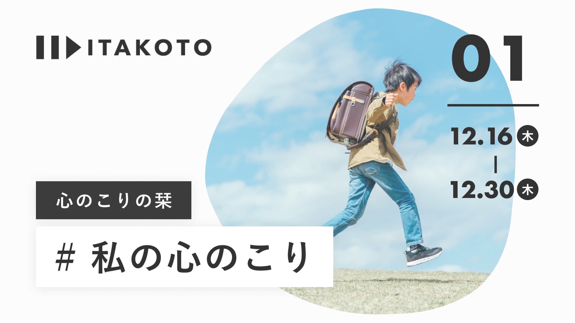 株式会社itakoto(本社:北海道札幌市、CEO:田村 淳、以下itakoto)は、2021/12/16(Thu) 12:00~12/30(Thu) 12:00にかけて「心のこりの栞 〜私の心のこりコンテスト〜」を開催します。誰しもが抱える「心のこり」をnoteに自由に投稿してもらい、特に印象的な心のこりを投稿してくださった方には豪華景品をプレゼントします。