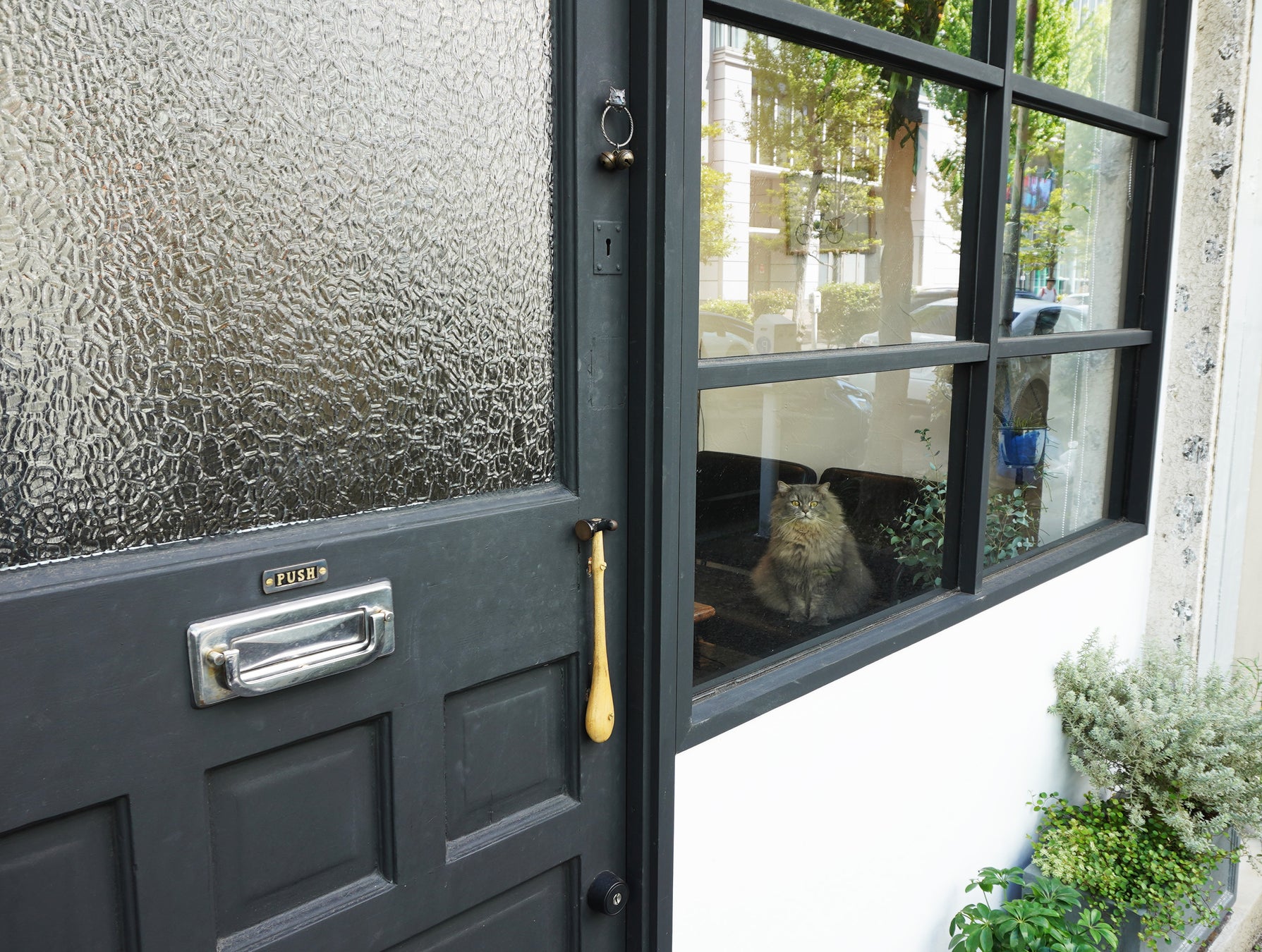 猫がいる為、基本的にはドアを施錠しているので、ご来店の際はドアノッカーを叩いてお知らせください。