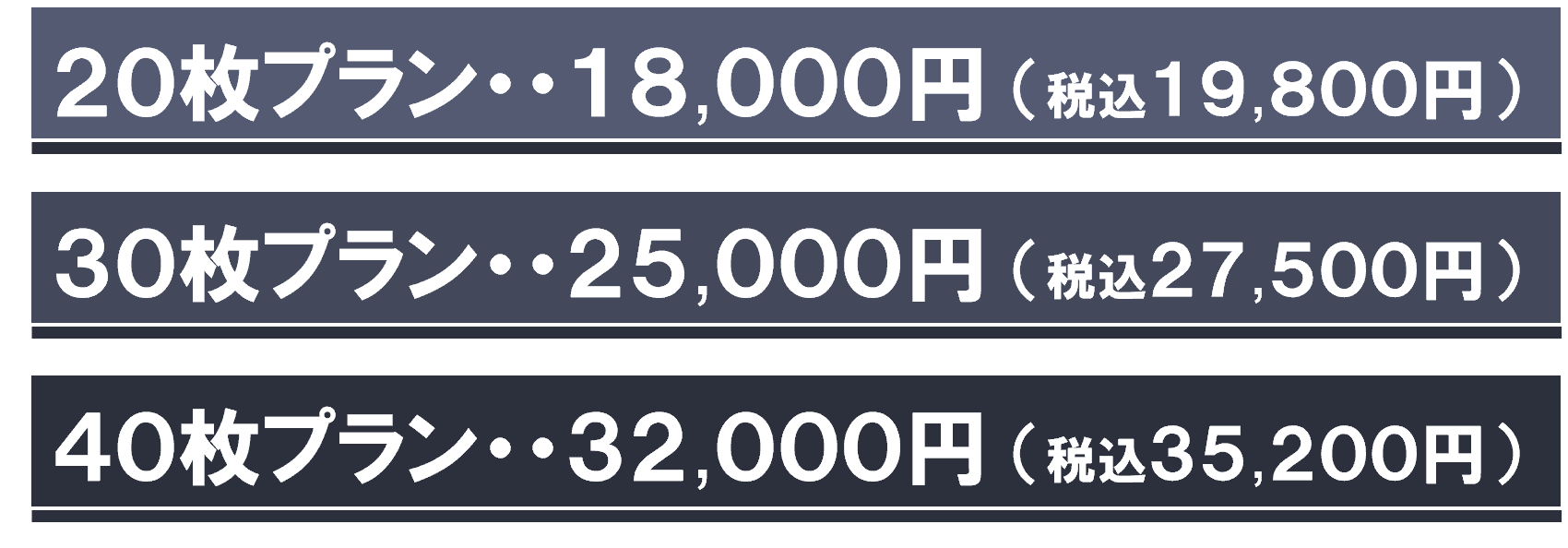 A 全国一律で税込19,800円/20カットで撮影可能です(その他プランもご用意)