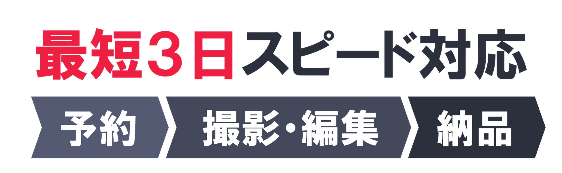 撮影から編集までを含んだ全国一律の料金プランのため、見積もりを待つことなく即時撮影予約をすることができます。(基本プランにない撮影内容は「カスタム撮影」としてお見積り依頼を承ることが可能です)