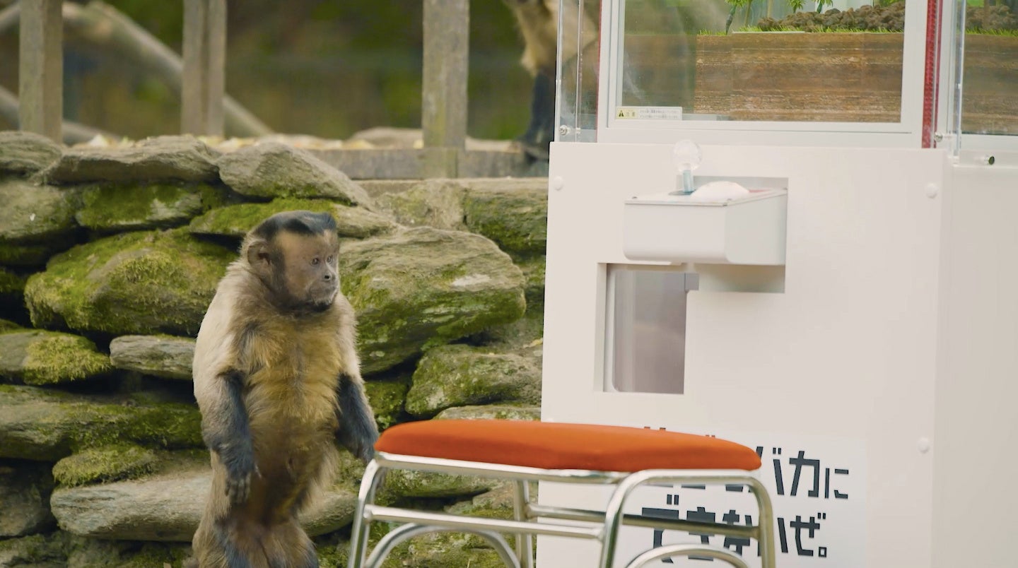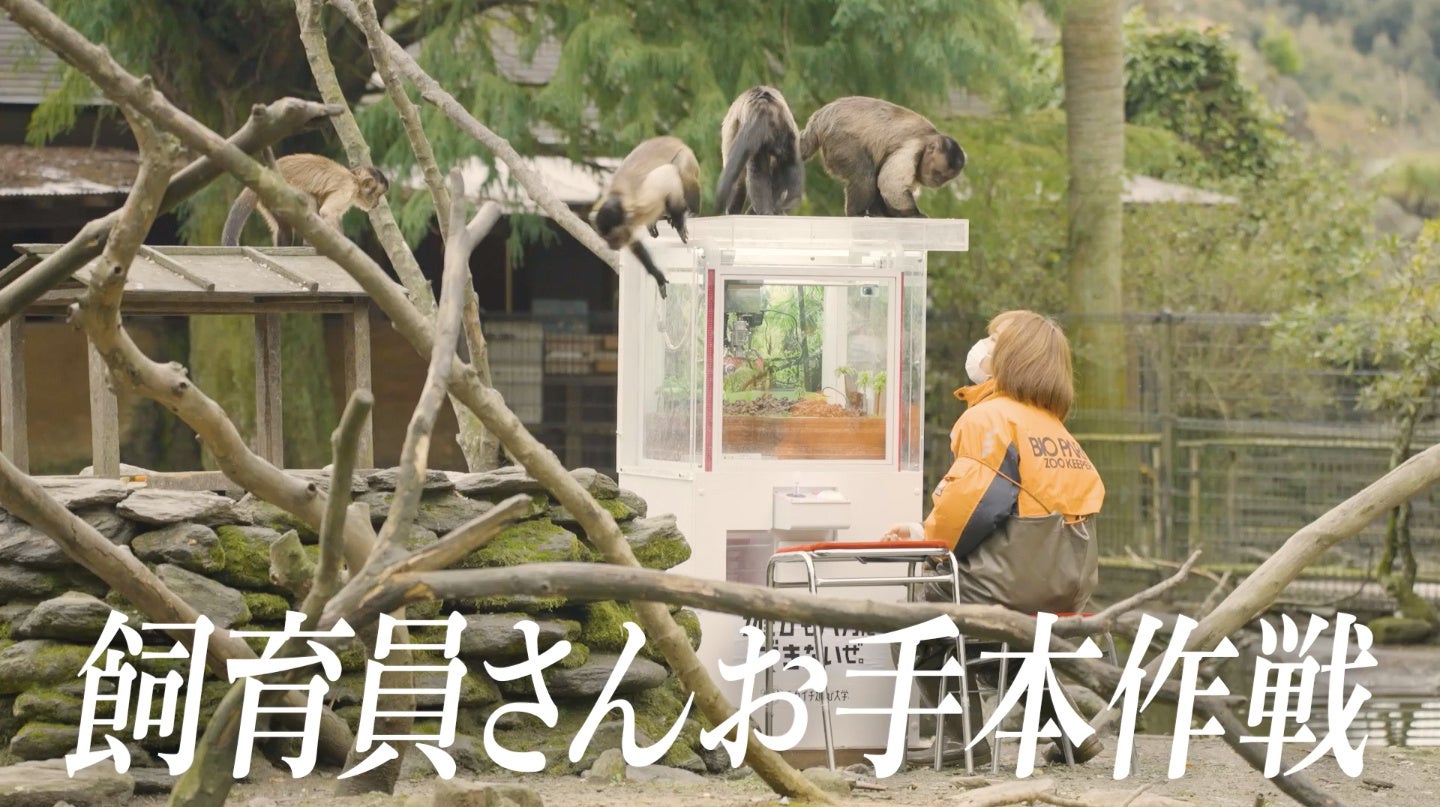 映画「アラジン」や「インディ・ジョーンズ」にも出演するこのお猿さんは、新世界ザルの中で一番賢いとされ、手先も器用。自ら自販機でジュースを買うなど想像を超えたIQの持ち主。きっとこのお猿さんだったら、クレーンゲームで遊ぶ奇跡の瞬間が見れるかもしれない。そこで、野生に近い状態で動物たちを飼育する長崎バイオパークへ撮影の協力を打診しました。