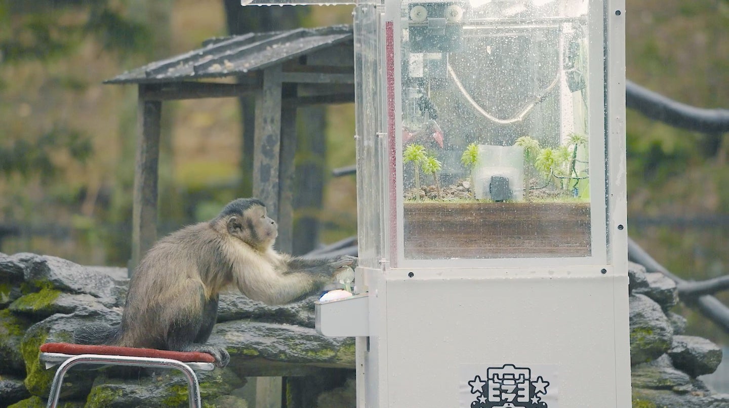 クレーンゲームに挑むのは、猿界屈指のIQの持ち主!オマキザル!