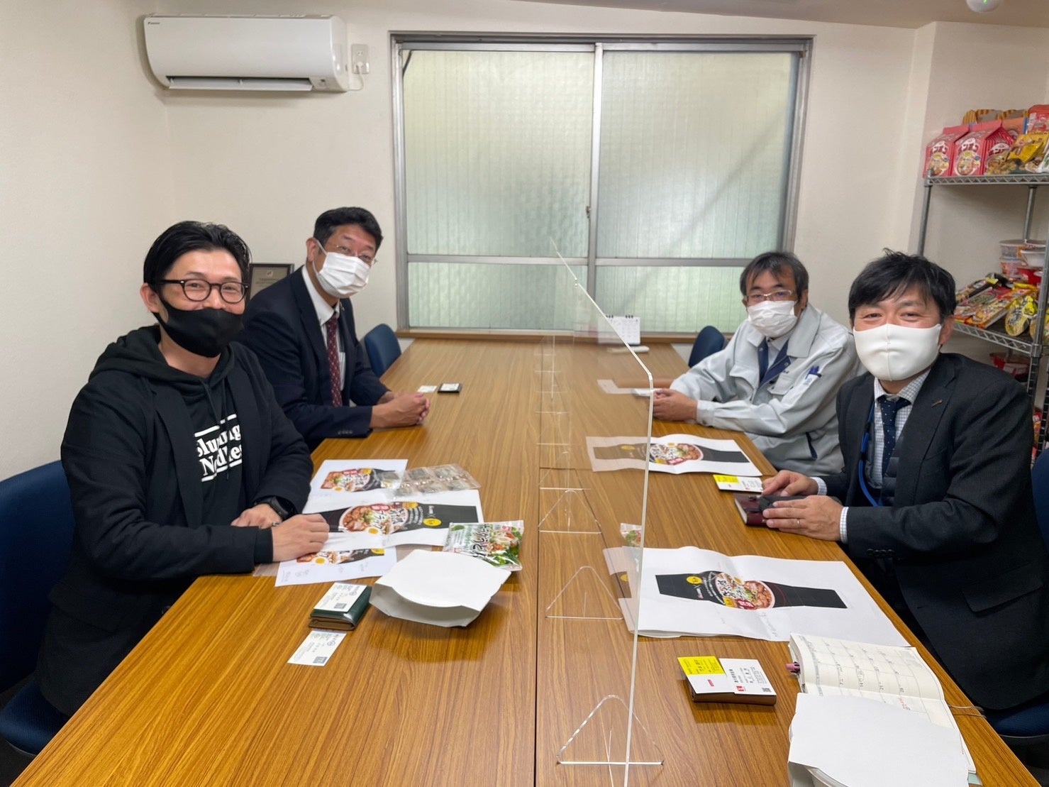 焼豚ラーメン弥太郎、山本製粉、地域商社みかわとの打ち合わせ風景