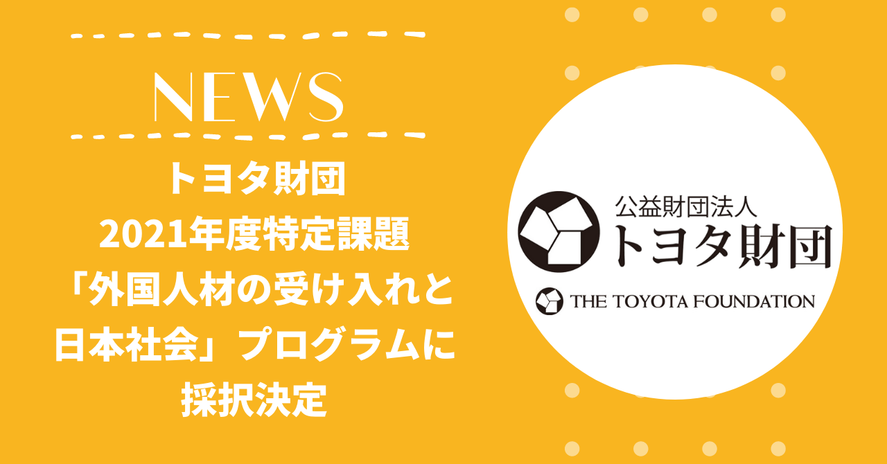 トヨタ財団2021年度特定課題「外国人材の受け入れと日本社会」プログラムに採択されました