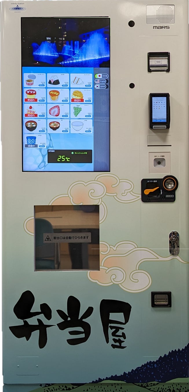 [ 無人のKIOSK Infinity Stationシリーズの 弁当自販機]
