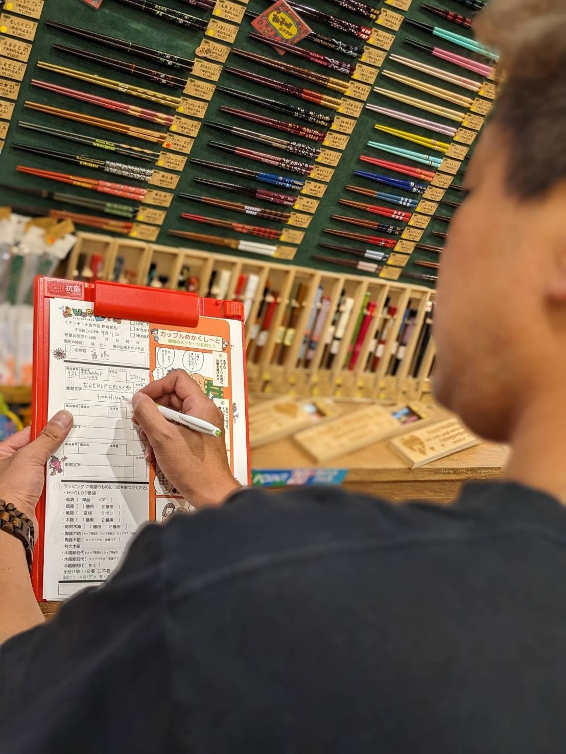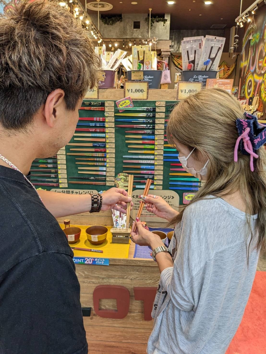 お揃いのお箸、もしくはそれぞれに合ったお箸を選びます。選ぶ過程も楽しさの一つです。