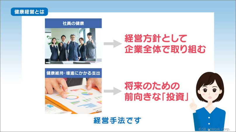 ソフトバンク株式会社の子会社で人事系シェアードサービスを提供するSBアットワーク株式会社(本社:東京都港区、代表取締役社長 兼 COO:長崎 健一、以下「SBアットワーク」)は、メンタルヘルスやハラスメント対策、ヘルスケアに関する法人向け動画教材サービス「Wellness Eye Study(ウェルネスアイ スタディ)」に、「健康経営」と「生活習慣病」をテーマとしたヘルスケアに関するコンテンツを新たに追加しました。