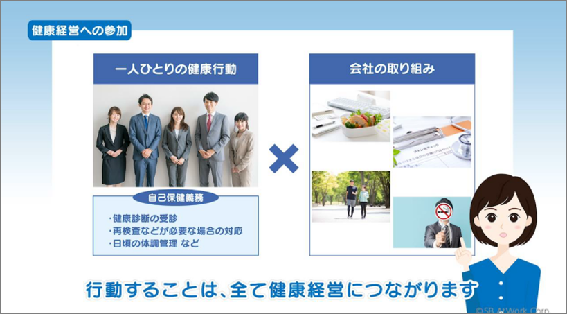 なお、今回制作したコンテンツは、SBアットワークが運営するウェルネスセンターの産業医および保健師の豊富な知見を基に制作しました。