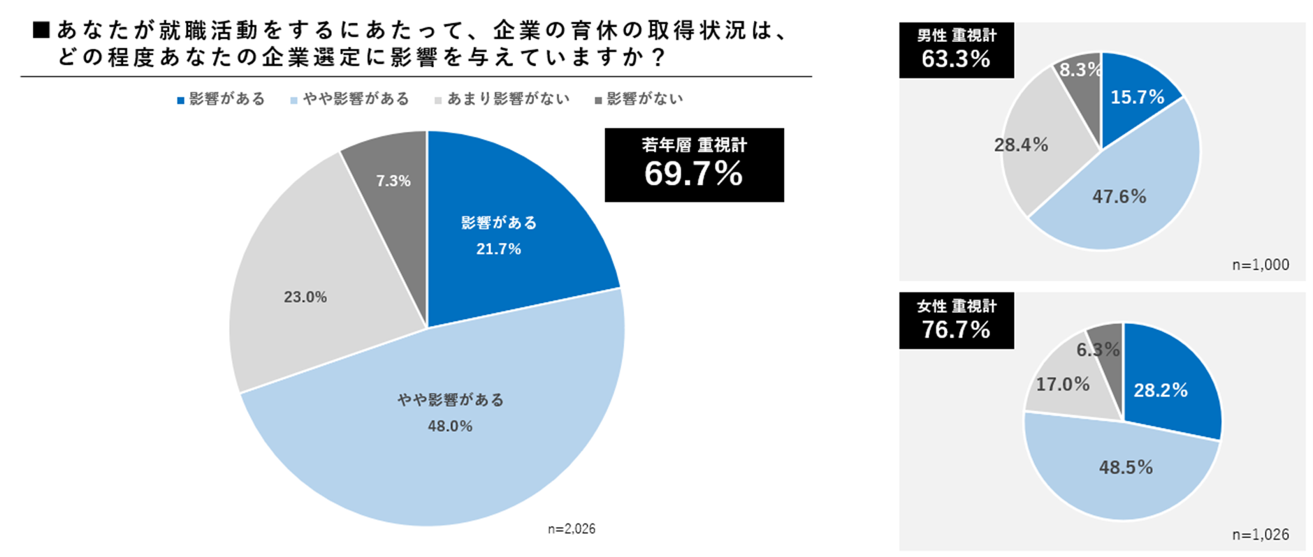 就職活動における企業選定においても、69.7%が「育休取得実績」を重視。