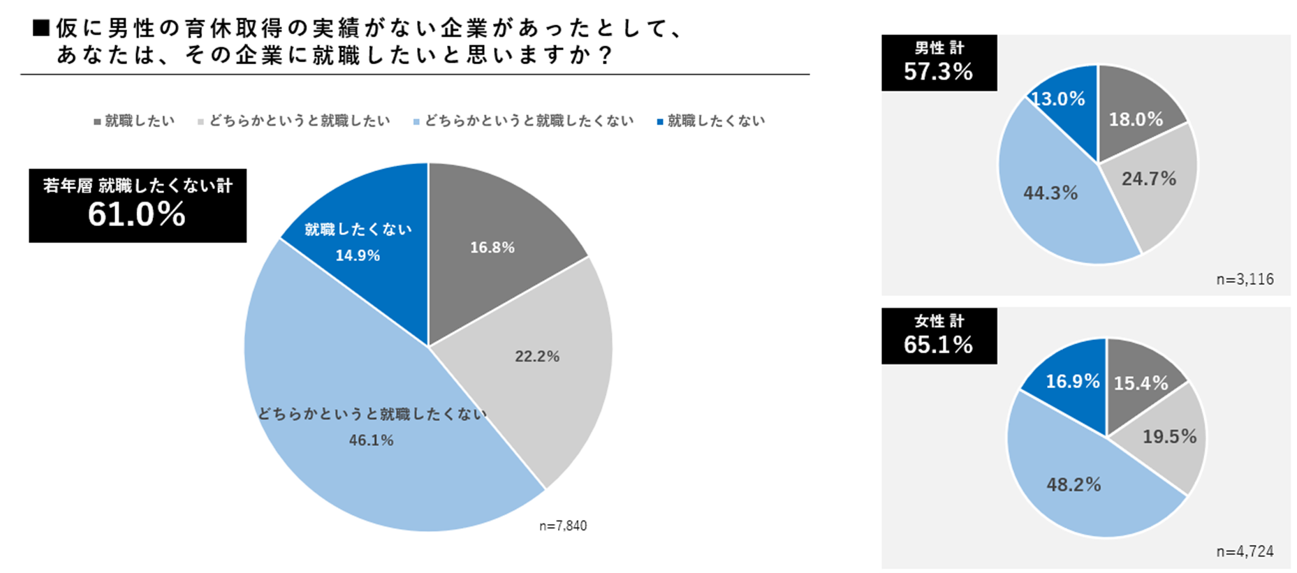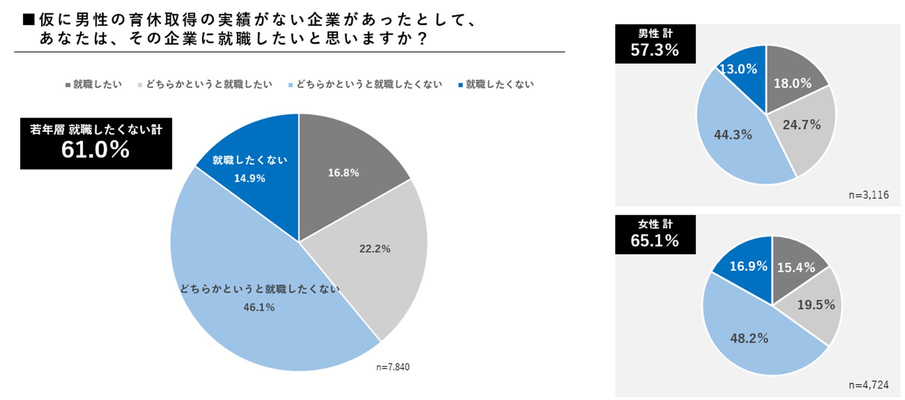 さらに、「男性の育休取得実績がない企業」に対しては、61.0%が「就職したくない」と回答し、