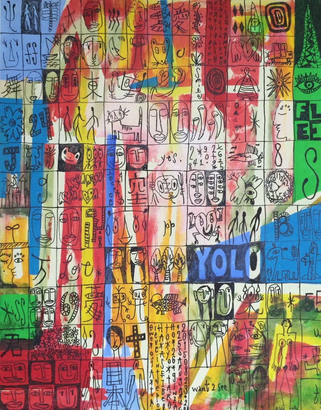 面白がって描いた落書きの積み重ねからたくさんのキャラクターが誕生しました。それらを窓の中に描いた作品「Windows」。