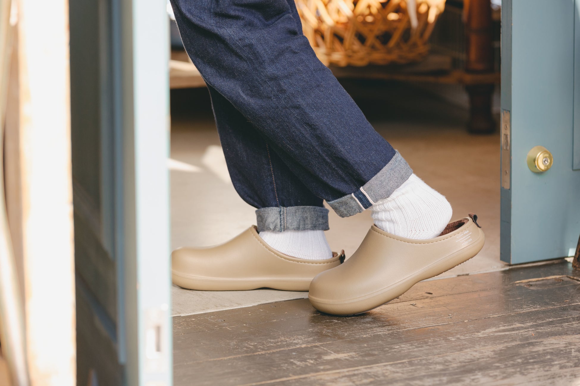 EVA素材を使用したコンフォートサンダルの内側にボアをあしらい、寒い日のちょっとした外出時に気軽に履いていただけます。