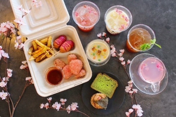また、人気のレストラン「TREE by NAKED」が開発する、お花見のお供になるサステナブルなヴィーガンメニューも販売。お酒類の持込みがもともと禁止されている新宿御苑のお花見にふさわしいノンアルコールカクテルであるモクテルや、まるでチキンのような弾力ある食感と美味しさを楽しめるヴィーガンナゲット、ベーコンの代わりにみりん粕を使用した具沢山のヴィーガンチャウダースープ、桜餅のような味わいのさくら餅風スコーンなど、フード&スイーツ、ドリンクなど充実のメニューです。