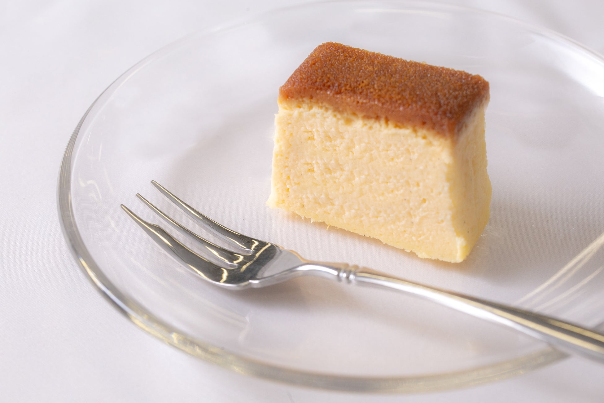 バニラの香りと味わいを存分に楽しんでいただけるように、原材料のバランスにこだわりました。また、プリン生地にチーズ素材を配合することで、なめらかな食感に。さらに、自家配合のアングレーズソースに牛乳だけでなく生クリームを加えることで、さらに濃厚で深みのある味わいに仕上げています。