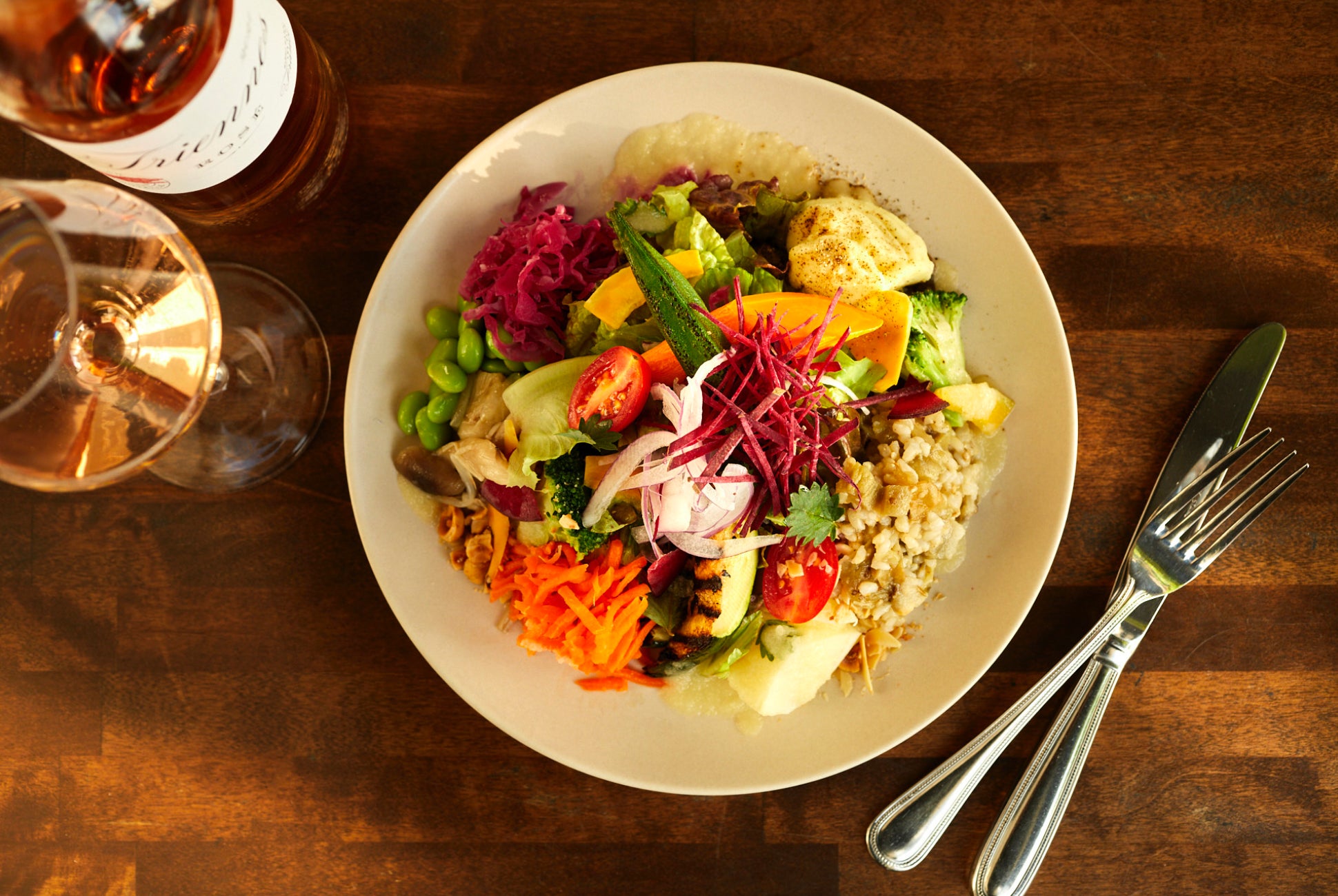その日おすすめの20種以上の旬の地野菜が楽しめるライスサラダ