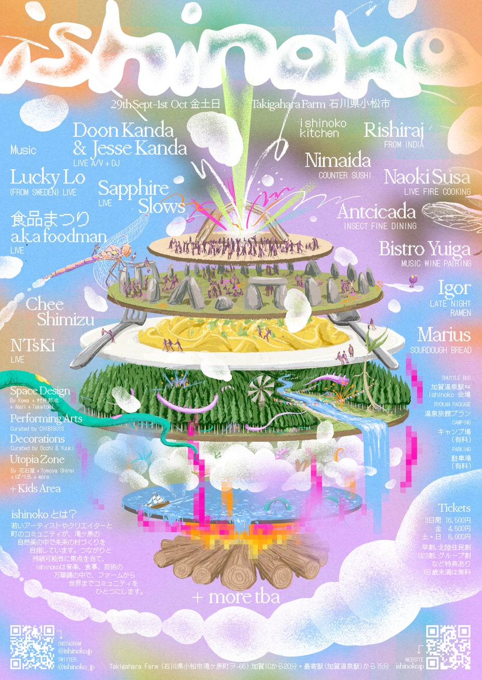 石川/野外フェスティバル:2023年9月29日〜10月1日、音楽・食・アートのフェスティバル「ishinoko」が石川県小松市滝ヶ原にて開催