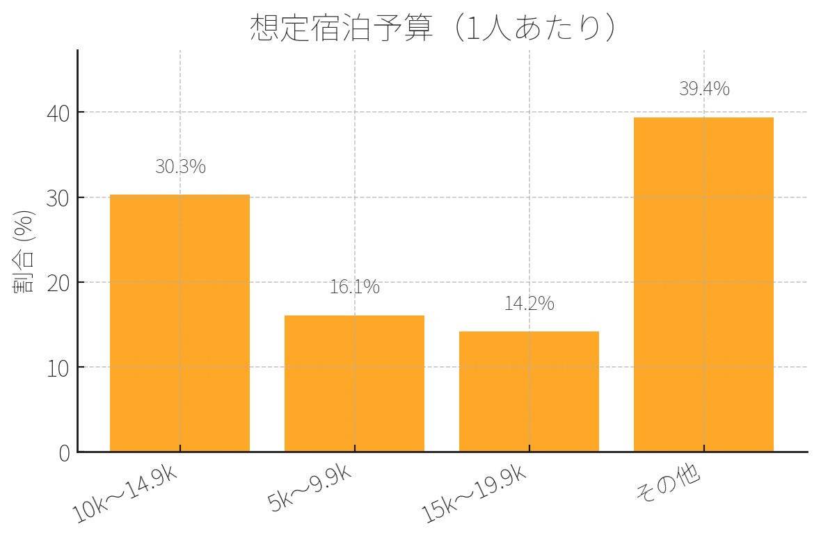 予算面では、「10,000円〜14,999円」が30.3%で最多、次いで「5,000円〜9,999円」(16.1%)、「15,000円〜19,999円」(14.2%)となっています。