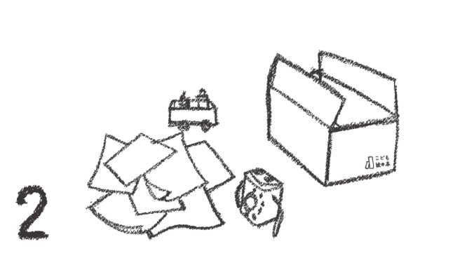 こども絵の本のつくり方は簡単です。自宅に届く送付用の箱に作品を入れて送るだけ。