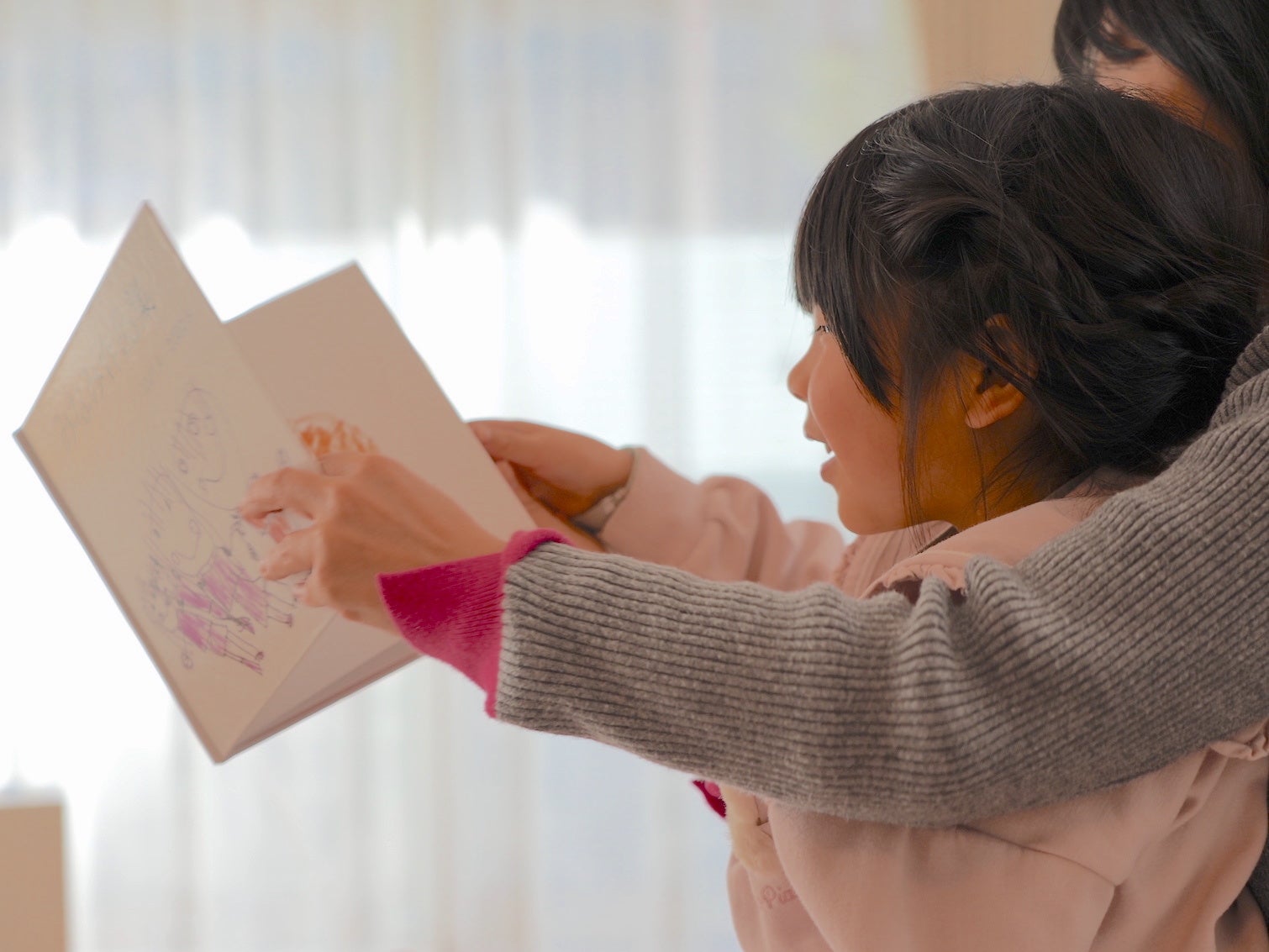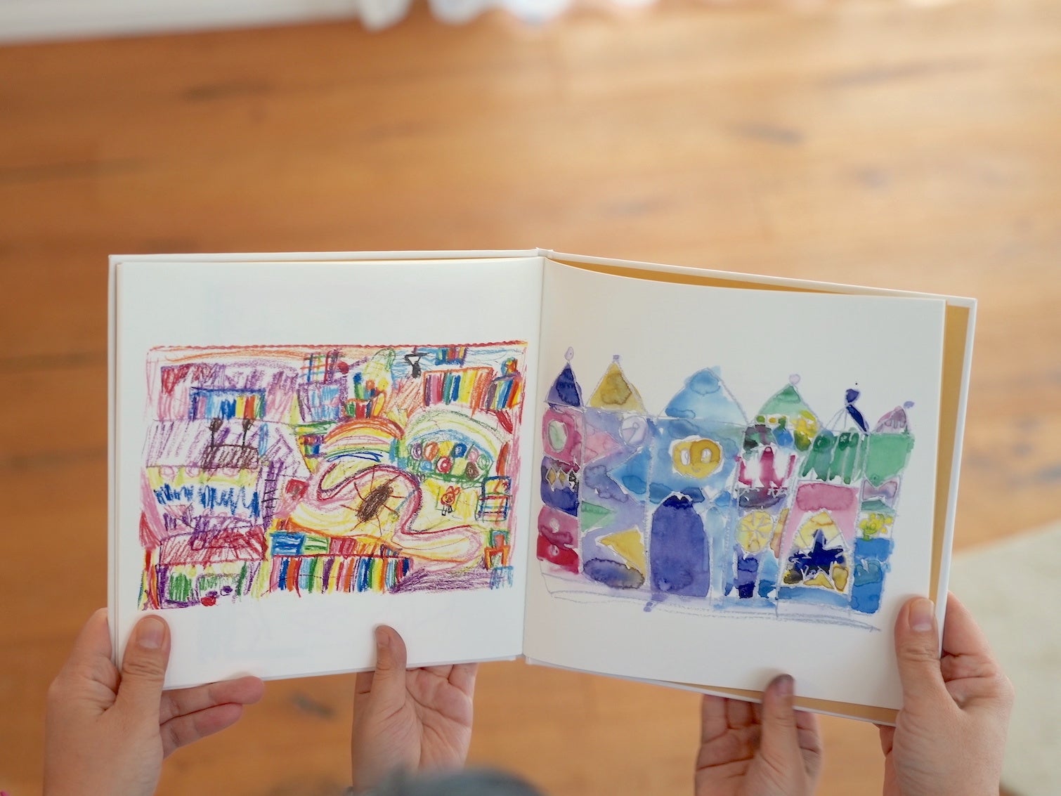 こどもの作品をいつでも愛でたい。いつまでもきれいに残したい。という思いでより良い品質の絵本、サービスを目指しました。こどもに絵本をプレゼントして、20年後、30年後、いつか私の娘がお母さんになったときに、私の孫にあたる娘のこどもと「お母さんが5歳のときにはこんな絵をかいていたんだよ」なんてお話ができるとすてきだなぁ。こども絵の本が世代をこえて、こどもの時に描いた絵でのストーリーが多くのご家庭で生まれるといいなぁと考えています。