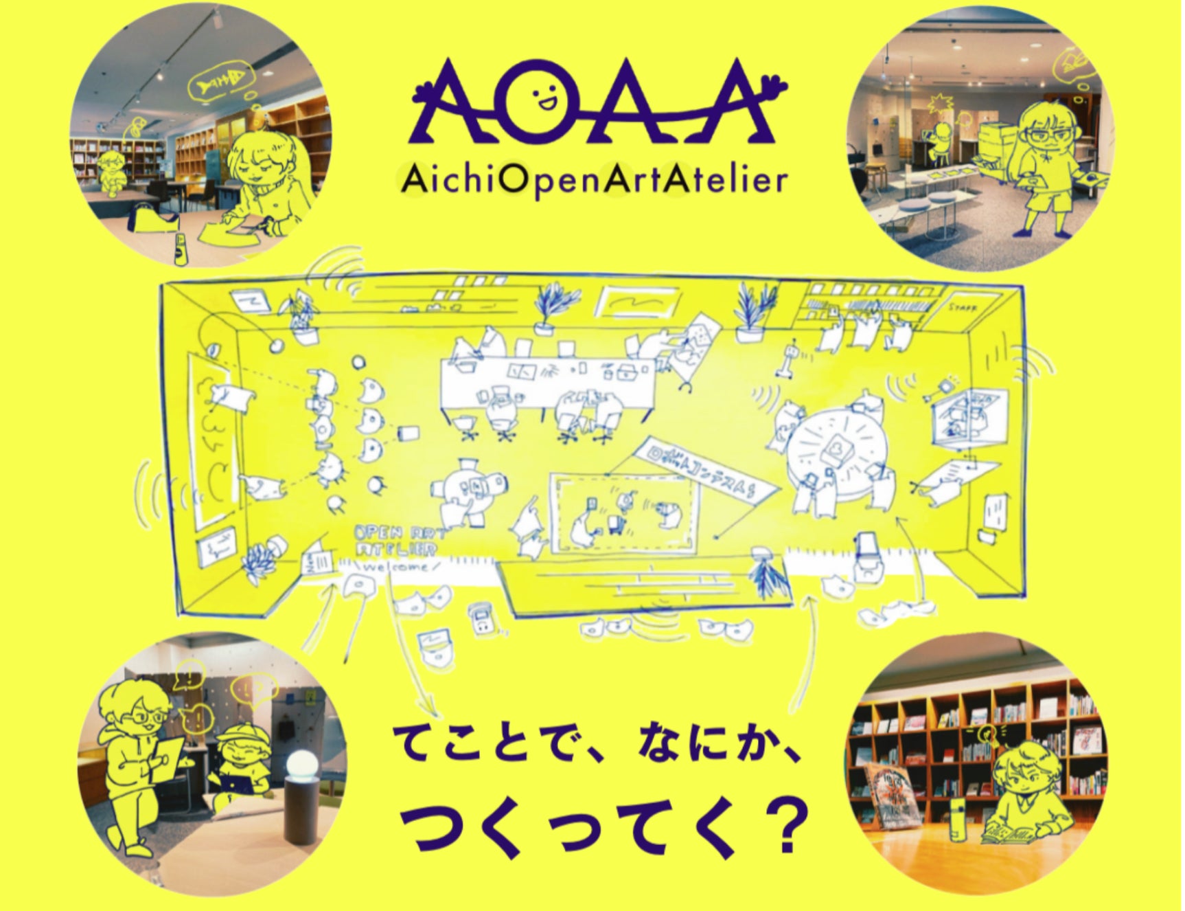 AOAAは、アート活動だけでなく、ワークスペースや勉強の場所としても利用できる多目的スペースです。「つくってく?」をコンセプトに、愛知芸術文化センター地下2階にオープンしました。