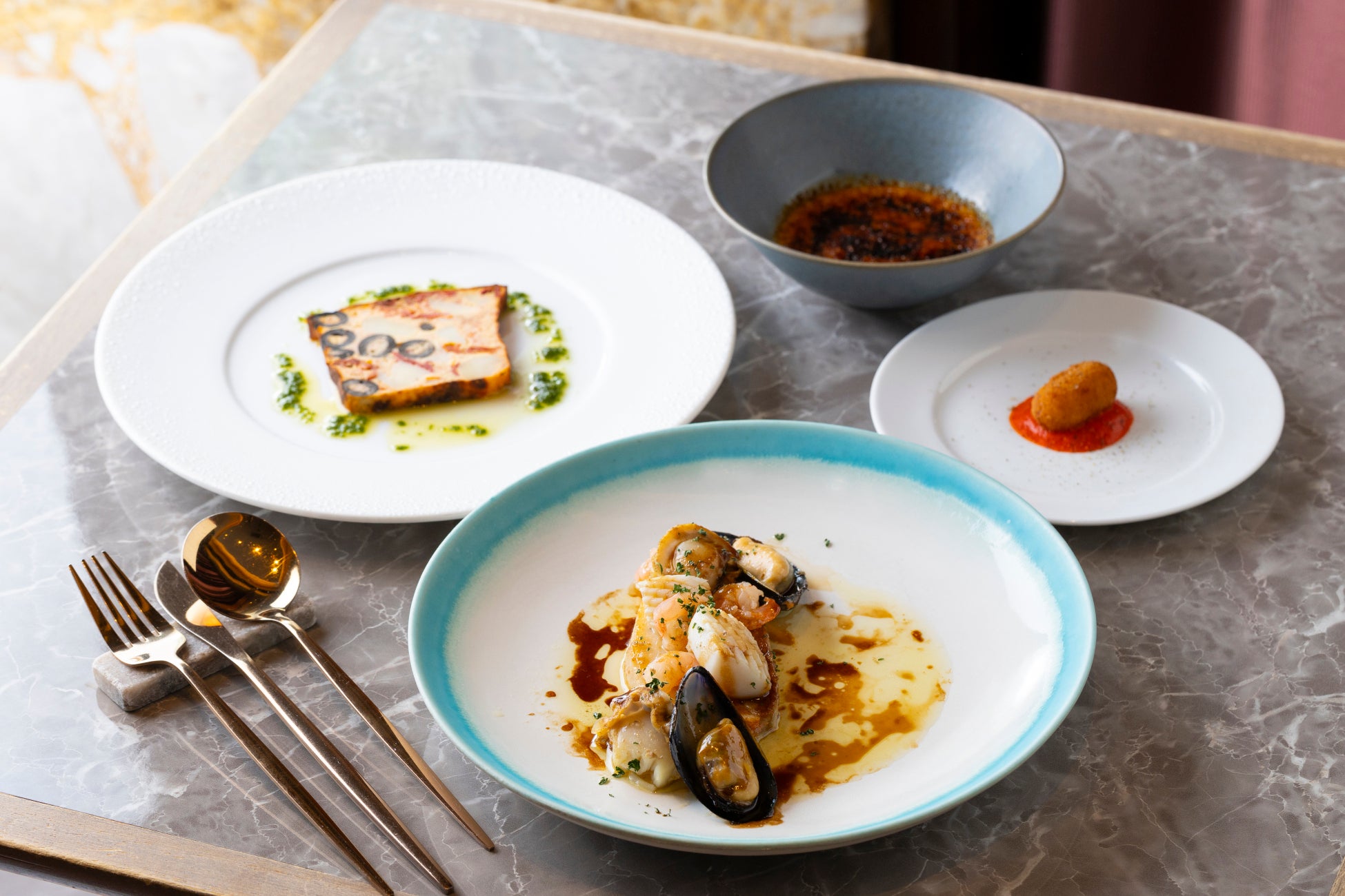 The arts fusion by L’écrin は、「リカーショップLE」に隣接するレストランです。アートとコラボレーションしたコースメニューに加え、ワインと気軽に楽しめるアラカルトも用意しています。