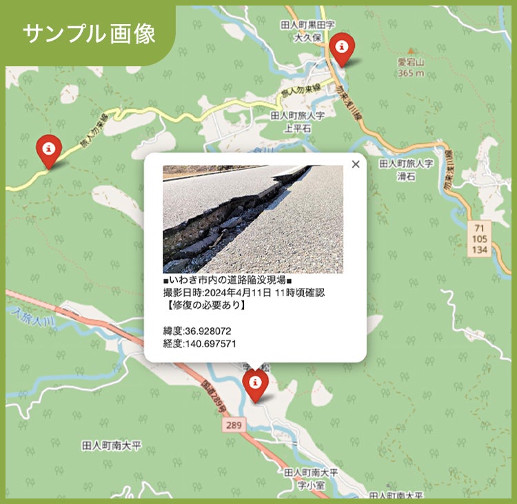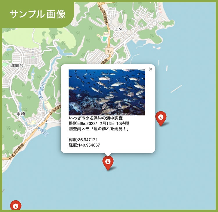 「現場地図」の自動可視化:ユーザーが任意に場所をプロットし、画像などをアップロードしHTML化データを作成できるようにします。