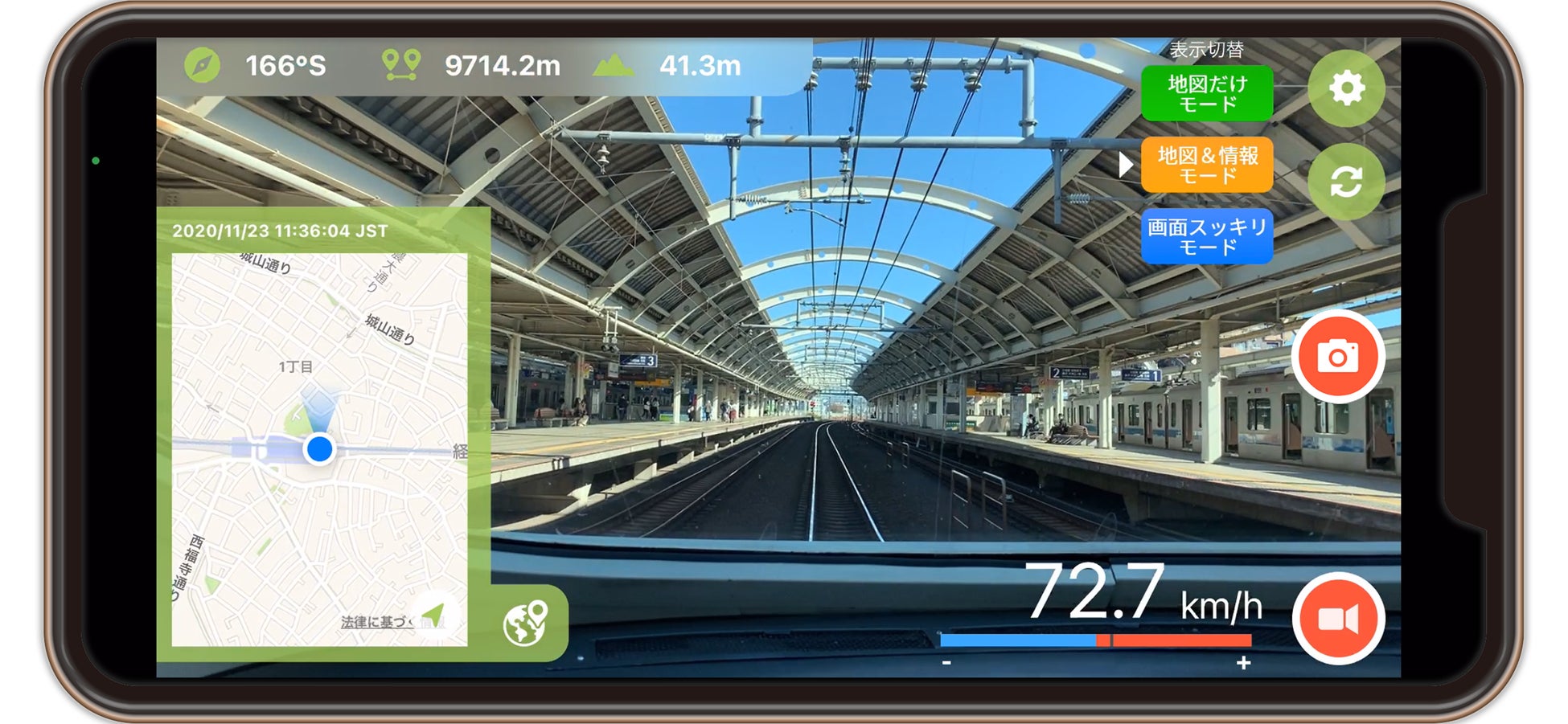 スマホ1台で地図付き動画を簡単に撮影でき、連続した位置情報を記録できるアプリ