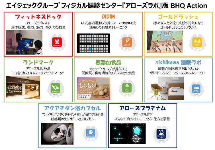 BHQ社が提供する、脳の健康状態をスマートフォンやパソコンで手軽に計測できる WEB アプリ『クイックBHQドック』を用いて、エイジェックはパフォーマンスが高い優秀人材を採用・発掘を目指します。また、「運動」を中心に、「社会生活」「健康管理」「環境」「食事」といったコンテンツを提供しているスポーツ科学が運営するフィジカル健診センター『アローズラボ』のサービスを提供することで(図5)、脳の健康を高め仕事のパフォーマンスを高めるための人材育成を科学的に進めていく予定です。これによって、即戦力の確保や業務効率の向上への貢献を目指します。